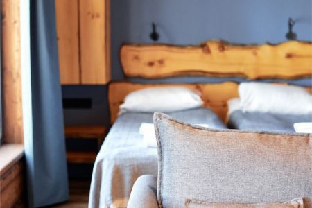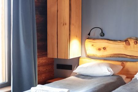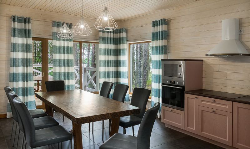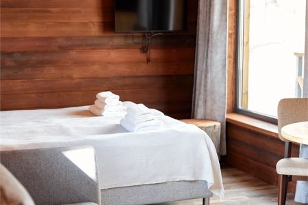 Для размещения отдыхающих предлагаются глэмпинги, номера, расположенные в 2-этажной вилле, а также отдельно стоящий домик охотника с баней, находящийся на самом берегу озера Сямозеро. В каждом из вариантов размещения есть все необходимое — уютная мебель, собственный санузел, телевизор, Wi-Fi. В глэмпингах и охотничьем домике для дополнительного комфорта предусмотрена собственная кухня, терраса с мебелью и барбекю зона.